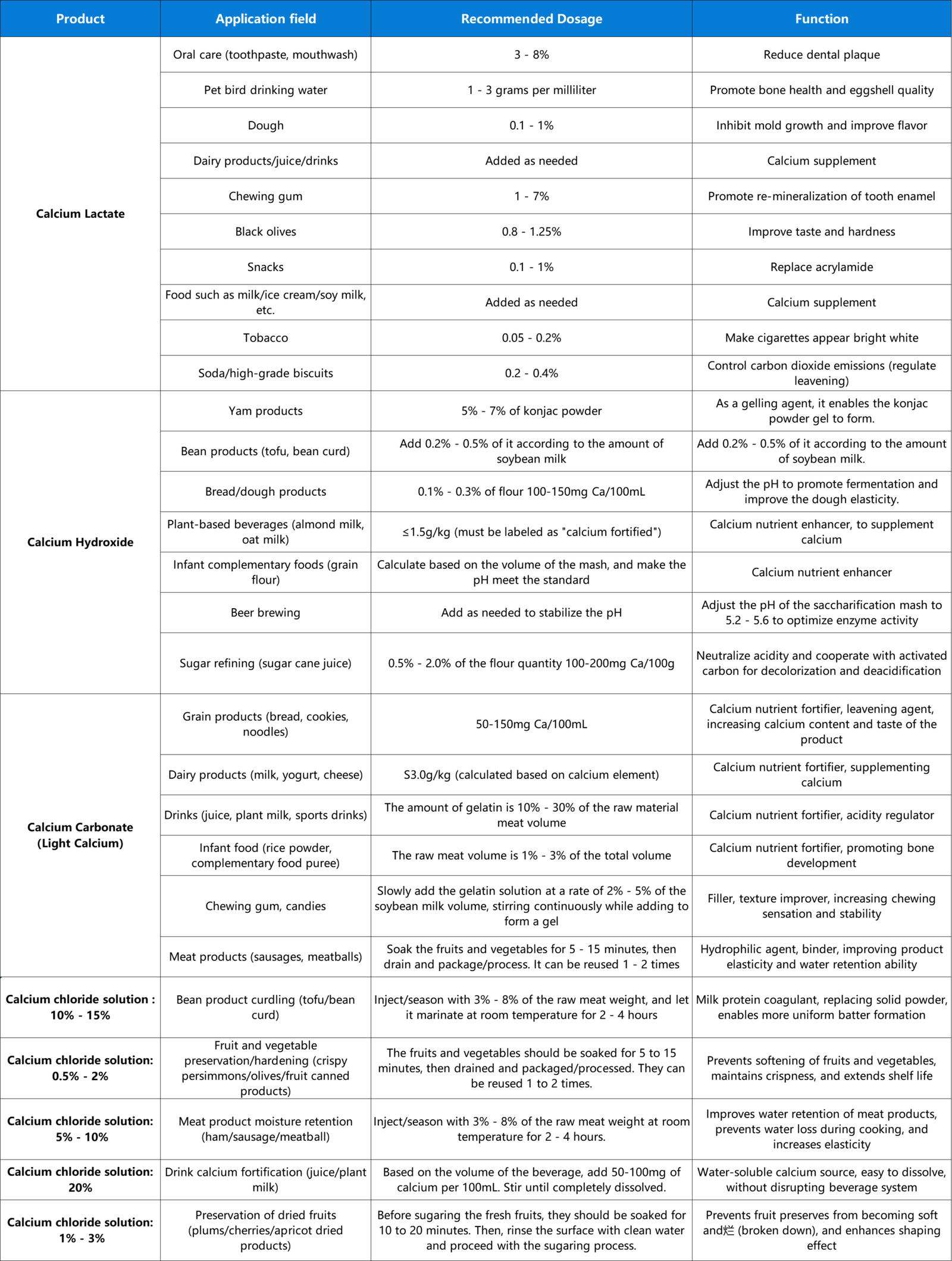 The following table indicates the recommended application and dosage of Liguo products. However, due to the different areas and raw materials, the final dosage could be different under premise of local laws and regulations.